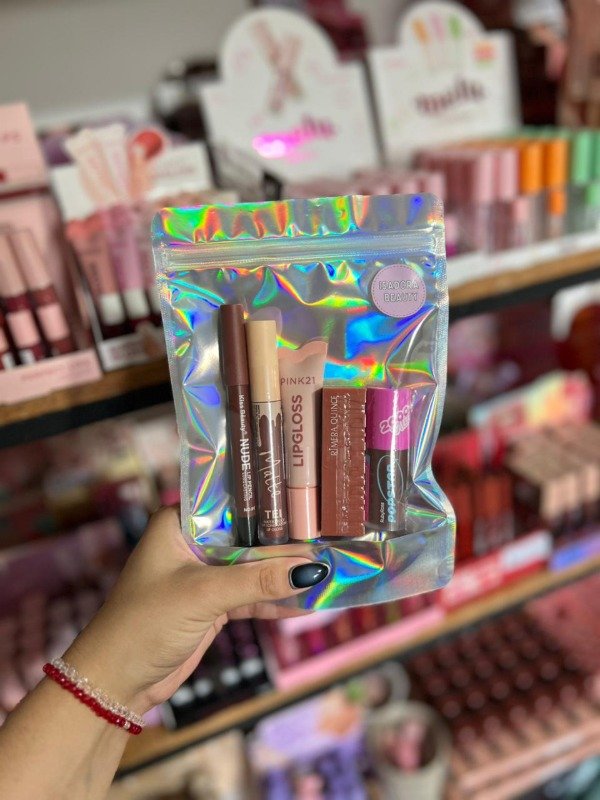 CONTIENE: delineador de labios KISS BEAUTY, labial liquido matte TEI, gloss labial super PINK 21, labial en barra matte RIMERA QUINCE y gloss tint popstar RUBY ROSE